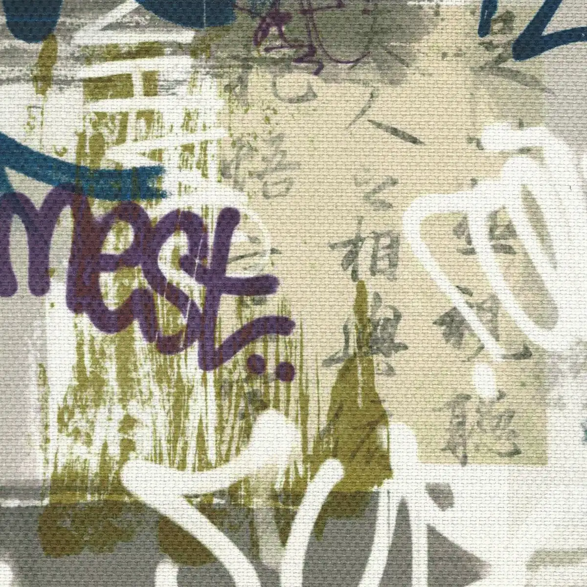 Typically ships within 24 business hours. The product photo is a 10 inch square section of Graffiti Blue upholstery fabric.