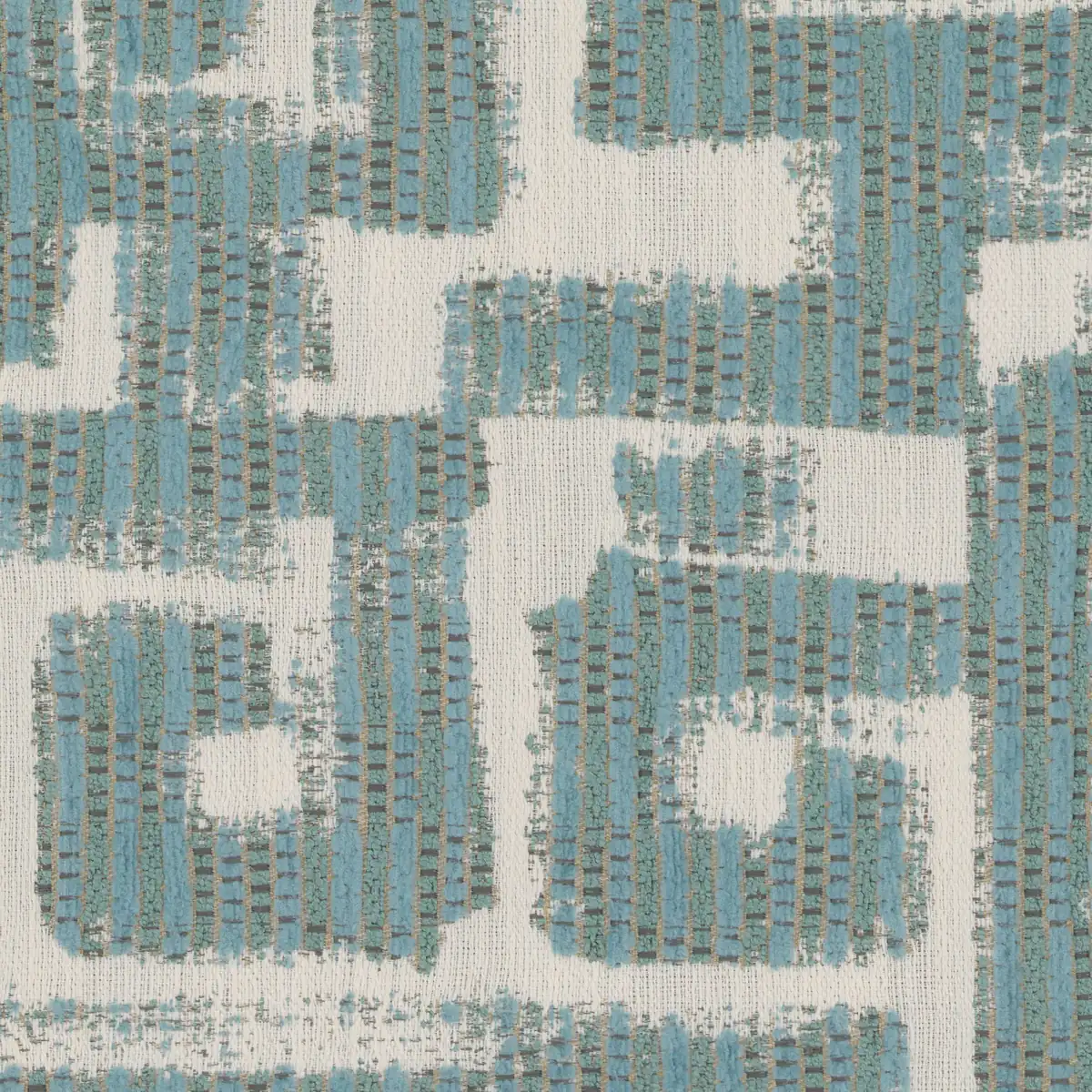 Minimum 3 yard order required. Typically ships within 24 business hours. The product photo is a 10 inch square section of Labyrinth Aqua upholstery fabric.