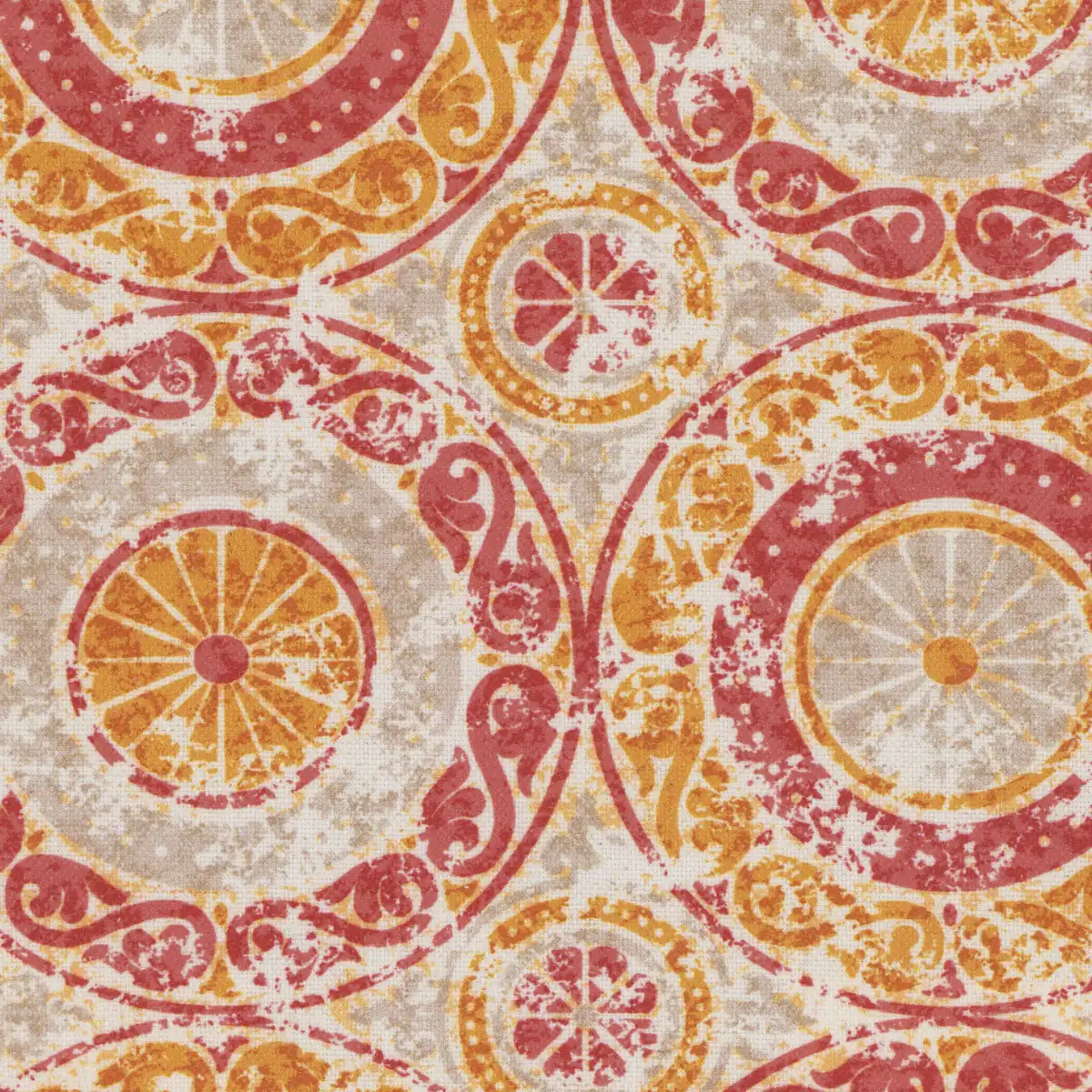 Minimum 3 yard order required. Typically ships within 24 business hours. The product photo is a 10 inch square section of Taraz Coral upholstery fabric.